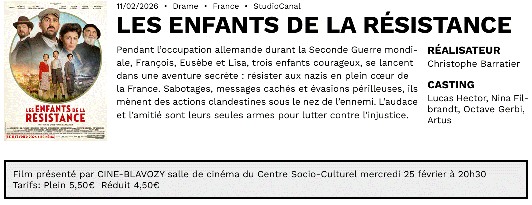 Vous êtes ici : Accueil > Vivre dans la commune > Cinema